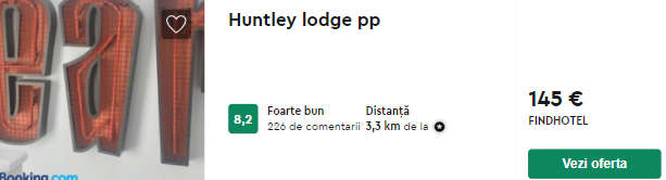 - Cazare (opt.1) Huntley lodge pp – 145 euro / 3 nopti / camera dubla