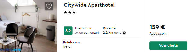 - Cazare (opt. 2) Citywide Aparthotel – 159 euro / 3 nopti / camera dubla