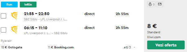 - Zbor Sibiu – Liverpool, 8 euro, dus-intors, operat de Ryanair