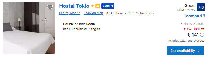 - Cazare (opt.1) Hostal Tokio – 141 euro / 3 nopti / camera dubla