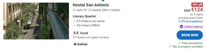 - Cazare 2: Hostal San Antonio – 124 euro / 3 nopti / camera dubla