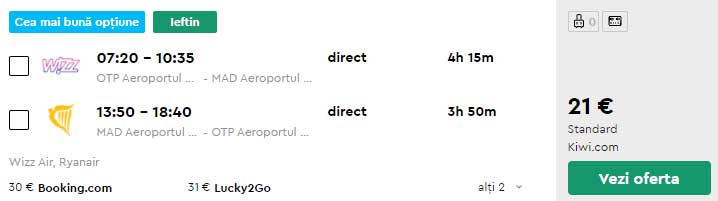- Zbor: Bucuresti – Madrid, 21 euro, dus-intors, operat de Wizz Air si Ryanair