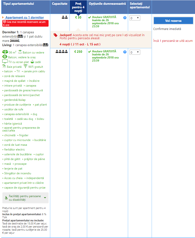 - Cazare 1: T1 Boavista Excelente (8.5 pe Booking) – 86 euro / 4 nopti / camera dubla / taxe incluse