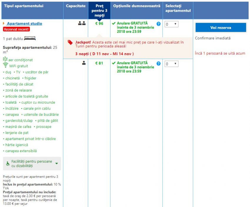 - Cazare 2: Monolocale Caraglio – 123 euro / 3 nopti / camera dubla / taxe incluse