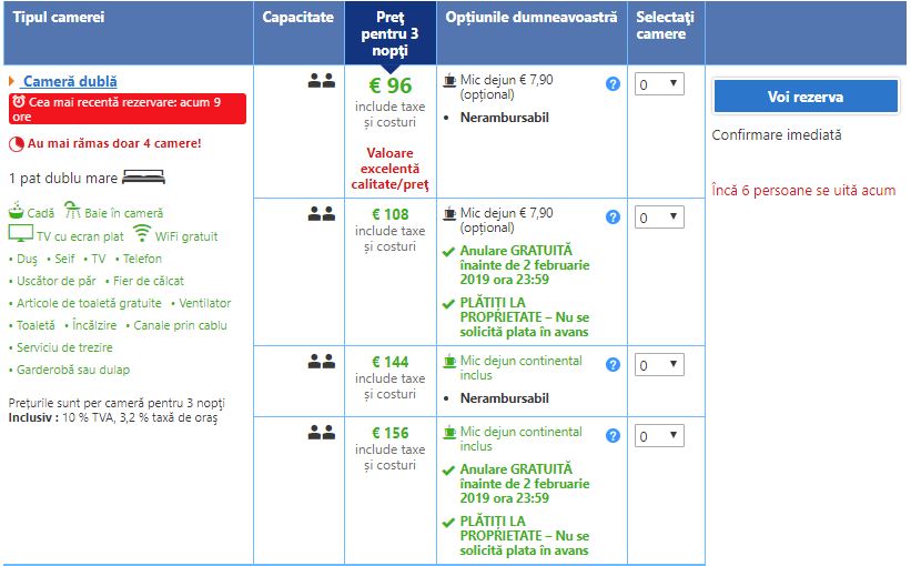 - Cazare 1: Hotel Carina – 96 euro / 3 nopti / camera dubla