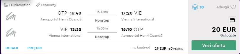 - Zbor: Bucuresti – Viena, 20 euro, dus-intors, operat de Laudamotion (Ryanair)