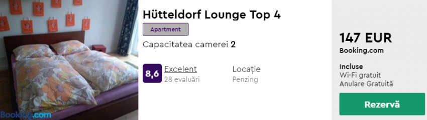 - Cazare 2: Hütteldorf Lounge Top 4 – 147 euro / 3 nopti / camera dubla