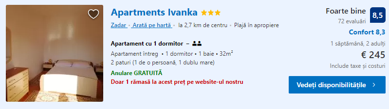 - Cazare 3: Apartments Ivanka – 245 euro / 7 nopti / camera dubla