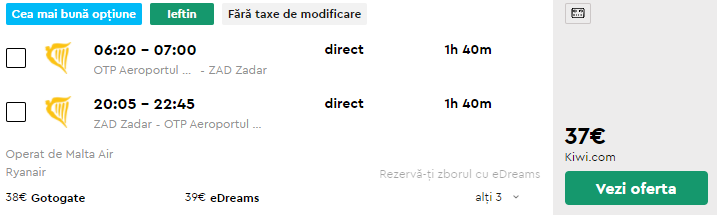 - Zbor: Bucuresti – Zadar, 37 euro, dus-intors. operat de Ryanair