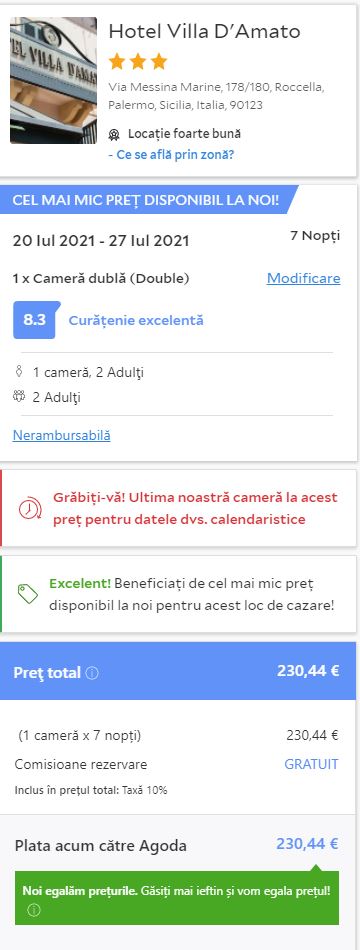 Un pret incredibil pentru Sicilia, mai ales la sfarsit de iulie, si unul dintre putinele ramase pentru vara!