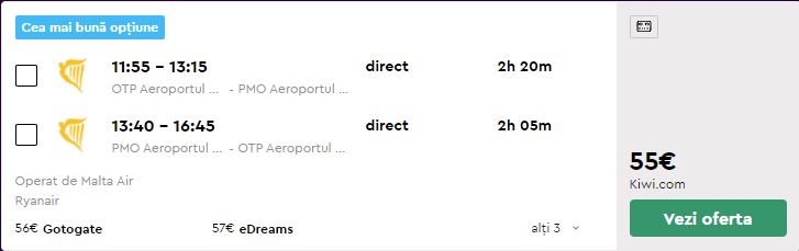 - Zbor: Bucuresti – Palermo, 55 euro, dus-intors, operat de Ryanair