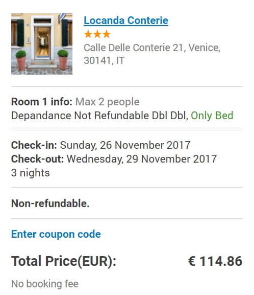 - Locanda Conterie (Murano) – 115 euro / 3 nopti / camera dubla SAU
