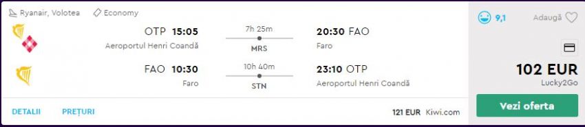 - Zbor: Bucuresti – Algarve, 102 euro, dus-intors