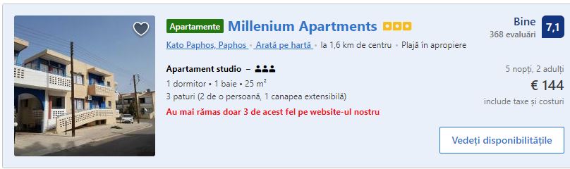 - Cazare 1: Millenium Apartments – 144 euro / 5 nopti / camera dubla