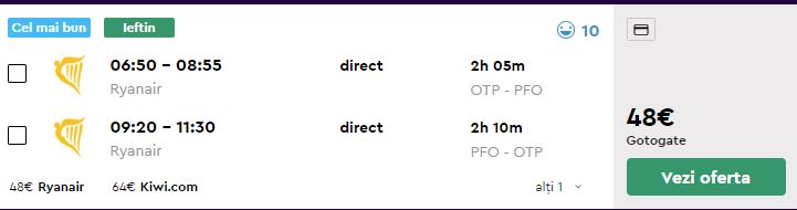 - Zbor: Bucuresti – Paphos, 48 euro, dus-intors, operat de Ryanair