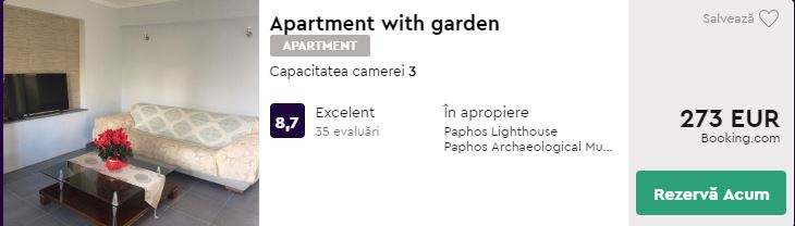 - Cazare 1: Apartment with garden – 273 euro / 7 nopti / camera dubla