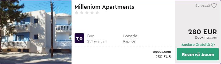 - Zbor: Bucuresti – Paphos, 117 euro, dus-intors, operat de Ryanair
