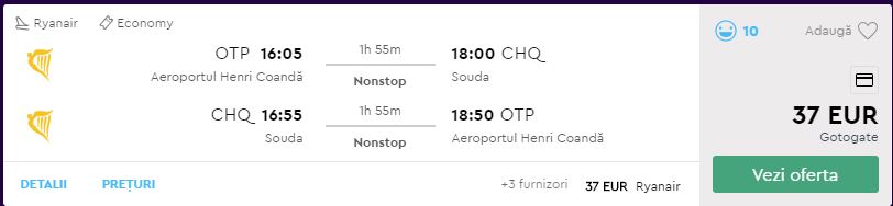 - Zbor: Bucuresti – Chania, 37 euro, dus-intors, operat de Ryanair