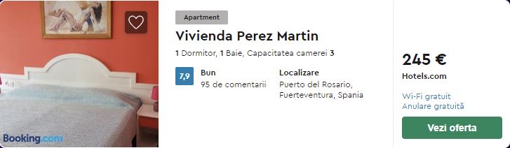 - Cazare (opt. 1): Vivienda Perez Martin – 245 euro / 7 nopti / camera dubla
