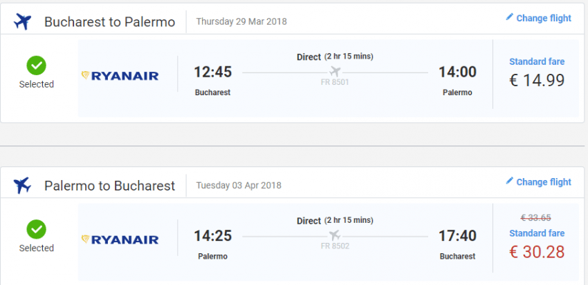 - Bucuresti – Palermo, 45 euro, dus-intors, Ryanair