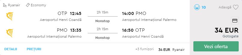 - Zbor: Bucuresti – Palermo, 34 euro, dus-intors, operat de Ryanair