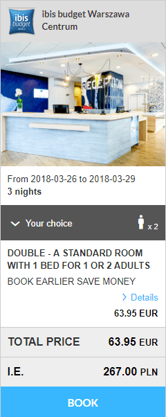 - ibis budget Warszawa Centrum – 64 euro / 3 nopti / camera dubla