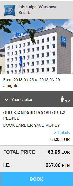 - Ibis Budget Warszawa Reduta – 64 euro / 3 nopti / camera dubla