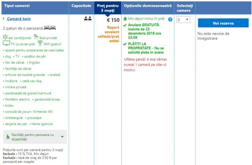 - Cazare 2: Nicetomeetyou – 181 euro / 3 nopti / camera dubla / taxe inclsue