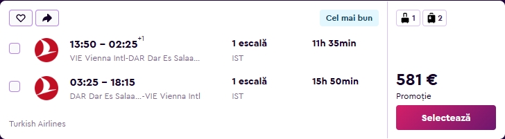 - Exemplu: Viena – Dar es Salaam, 581 euro