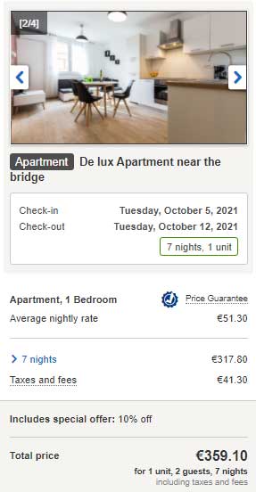 - Cazare 2: De lux Apartment near the bridge – 359 euro / 7 nopti / camera dubla