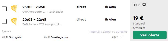 - Zbor: Bucuresti – Zadar, 19 euro, dus-intors, operat de Ryanair