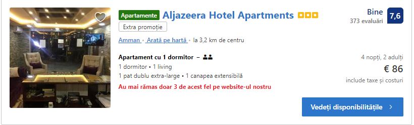 - Cazare 1: Aljazeera Hotel Apartments – 86 euro / 4 nopti / camera dubla