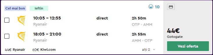- Zbor: Bucuresti – Amman, 44 euro, dus-intors, operat de Ryanair
