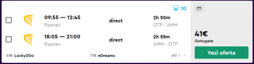 - Zbor: Bucuresti – Amman, 41 euro, dus-intors, operat de Ryanair