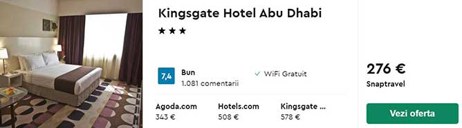 - Cazare 2: Kingsgate Hotel Abu Dhabi – 276 euro / 7 nopti / camera dubla