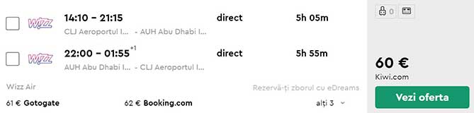 - Zbor: Cluj – Abu Dhabi, 60 euro, dus-intors, operat de Wizz Air