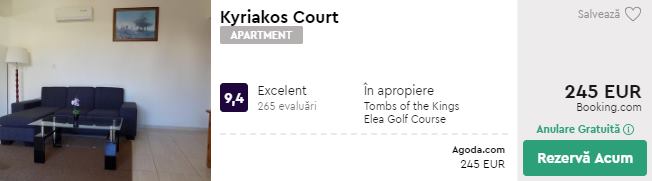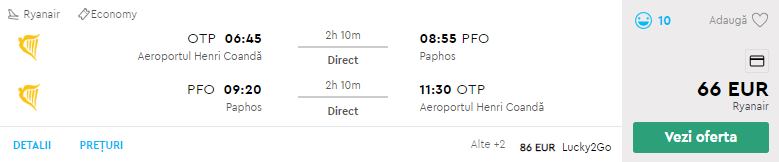 - Zbor: Bucuresti – Paphos, 66 euro, dus-intors, operat de Ryanair