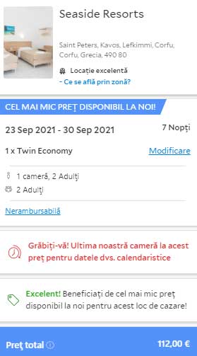 - Cazare 1: Seaside Resorts – 112 euro / 7 nopti / camera dubla