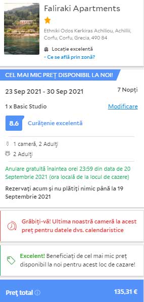 Am gasit pentru tine un pret absolut incredibil pentru o saptamana de august in Corfu: 95 euro/persoana pentru zbor direct dus-intors si 7 nopti de cazare cu mic dejun inclus! Multe perioade disponibile!