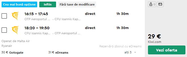- Zbor: Bucuresti – Corfu, 29 euro, dus-intors, operat de Wizz Air si Ryanair