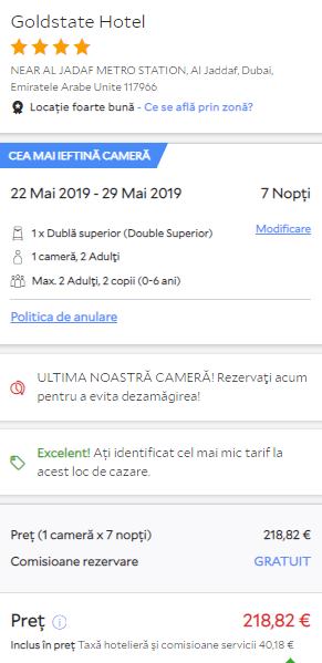 - Cazare 3: Goldstate Hotel 4* – 219 euro / 7 nopti / camera dubla