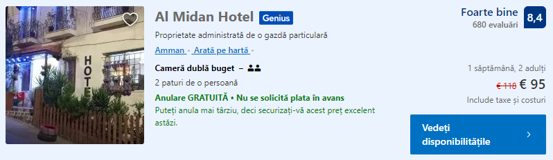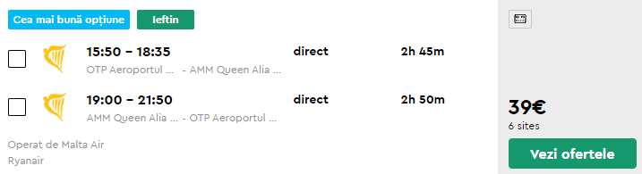 - Zbor: Bucuresti – Amman, 39 euro, dus-intors, operat de Ryanair
