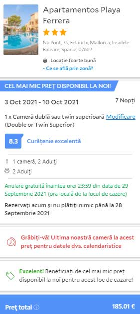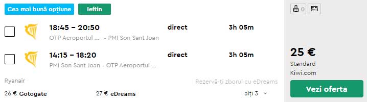 - Zbor: Bucuresti – Palma de Mallorca, 25 euro, dus-intors, operat de Ryanair