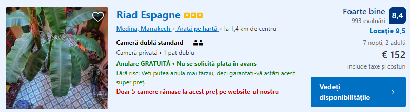 - Cazare 2: Riad Espagne – 152 euro / 7 nopti / camera dubla