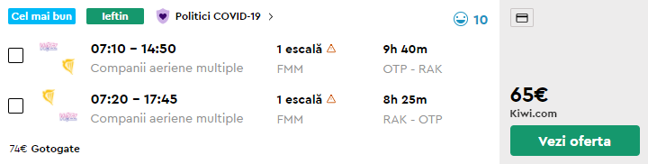 - Zbor: Bucuresti – Marrakech, 65 euro, dus-intors, garantie Kiwi