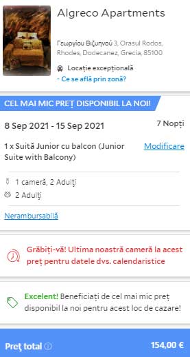 - Cazare 1: Algreco Apartments – 154 euro / 7 nopti / camera dubla