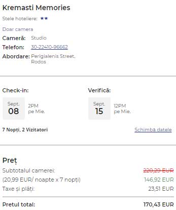 - Cazare 2: Kremasti Memories – 170 euro / 7 nopti / camera dubla