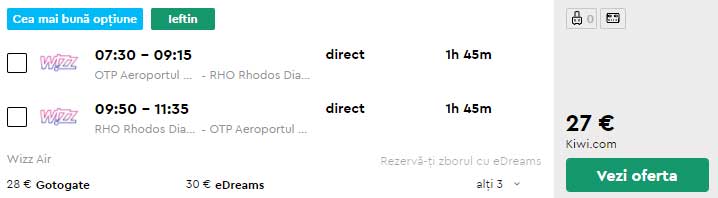 - Zbor: Bucuresti – Rodos, 27 euro, dus-intors, operat de Wizz Air