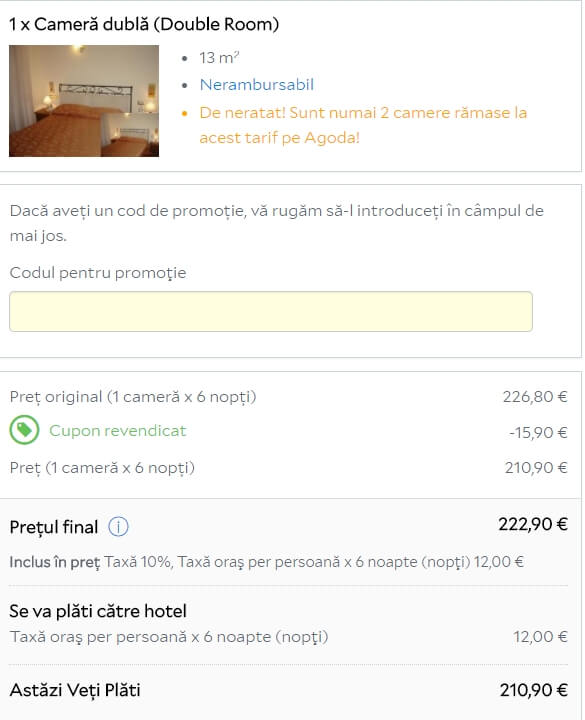 - Cazare: 223 euro / 2 = 111.5 euro/p