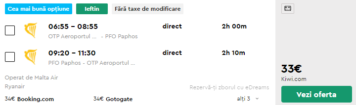 - Zbor: Bucuresti – Paphos, 33 euro, dus-intors, operat de Ryanair